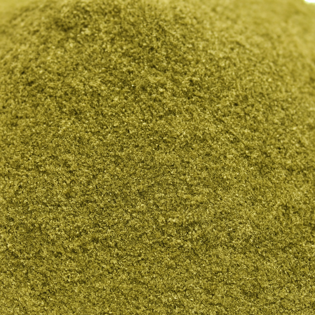 The product is a finely textured, free-flowing powder with a medium to dark green color. Its powdered form enables accurate measurement, effortless blending into both dry and liquid mixtures, and stable long-term storage without compromising its appearance or properties.